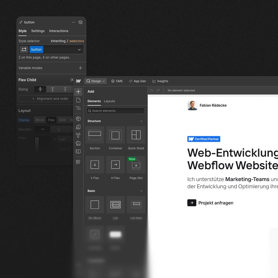 Seit über 6 Jahren arbeite ich täglich mit Webflow und unterstütze Marketing-Teams und Agenturen dabei, ihre Website effizient und zuverlässig umzusetzen.